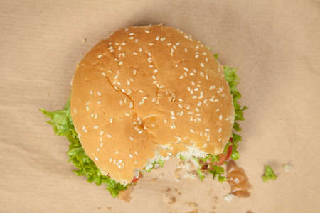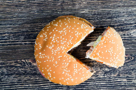 A fast food cheeseburger with a bite taken out of it one bite taken out of it Bitten hamburger.