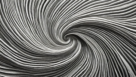 Dynamic abstract spiral featuring alternating black and white stripes creating a hypnotic tunnel effect with depth and motion.