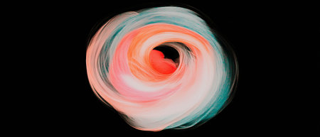 Swirling spiral watercolor patterns create a dynamic vortex effect against a black background