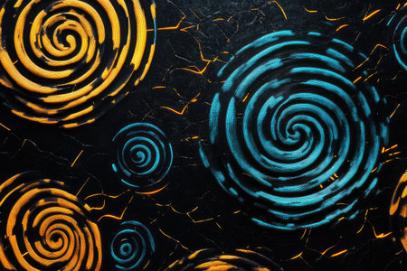 Abstract digital background with yellow and blue color spirals on a black backdrop, a cyberpunk concept. --ar 3:2 --v 6.1 Job ID: 2a72564c-21fb-4341-ae1c-7bab7b58e1e5