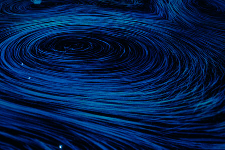 showing vibrant swirling abstract pattern of deep blues and whites resembling ocean currents or marbled ink...