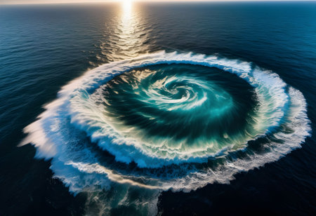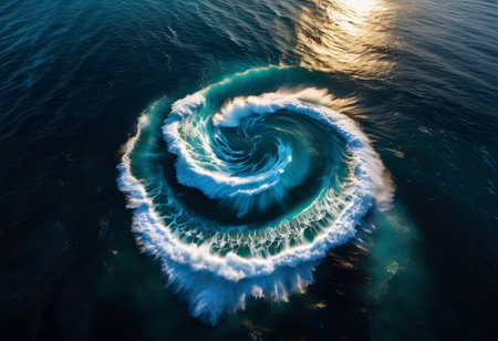Powerful maelstrom swirling in deep blue ocean waters