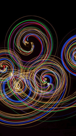 Colorful light trails on a black background. Long exposure photograph.
