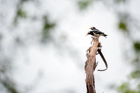 Asian Pied Myna stand on branch of tree, Thailand