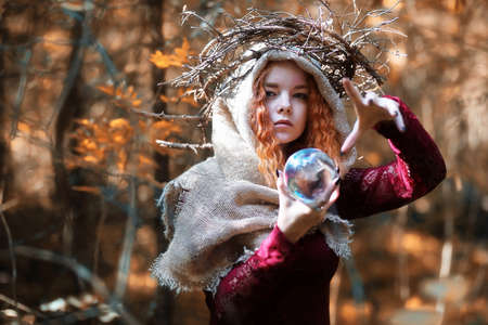 Fairy magician. A sorcerer with a glass sphere, a magical spell