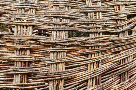 Old wicker fence of willow twigs. Abstract background.