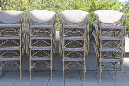 Stacked Bamboo Chairs at Garden Pation Outdoor