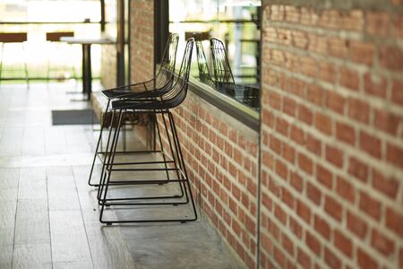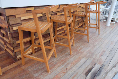 Close Up Detail Of Wooden Cafe Seating Chairs With No People