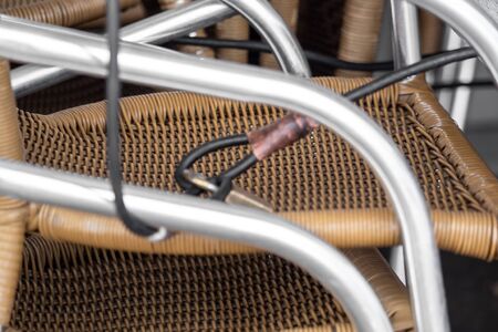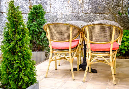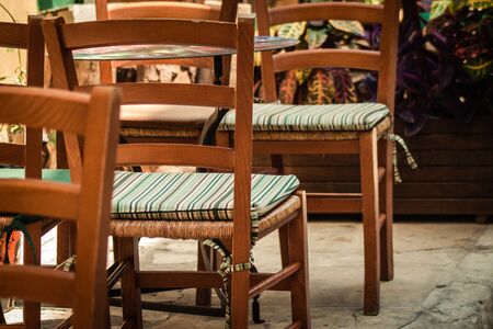 Closeup of chairs from a restaurant located in the old city of Limassol in Cyprus island