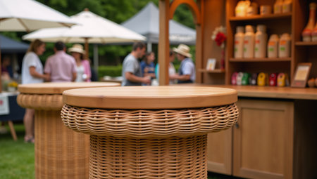 Vibrant summer festival scene with charming wicker podium as the main focus Outdoor Product Showcase
