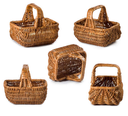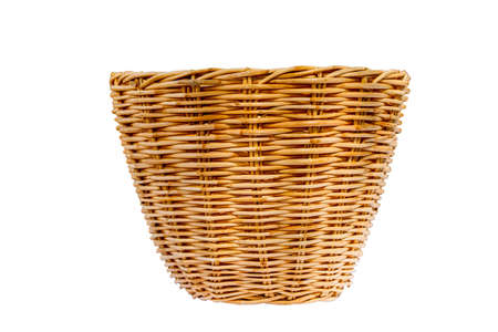 Texture of a wicker basket close-up. Abstract background with a wood pattern. Isolated on a white background