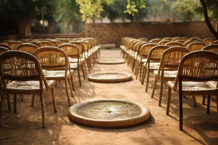 Many chairs on patio in the moning in amphetheater
