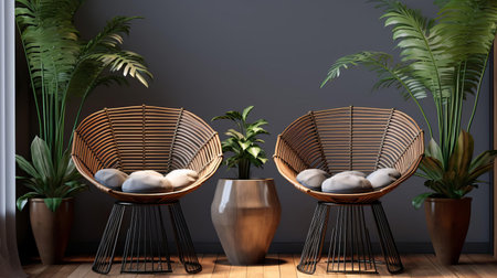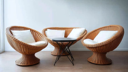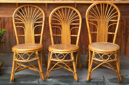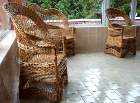 Two chairs made of rattan on the terrace