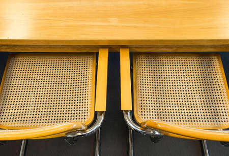 Closeup surface wood pattern at wood weave chair texture background
