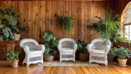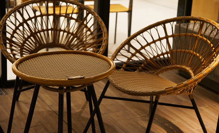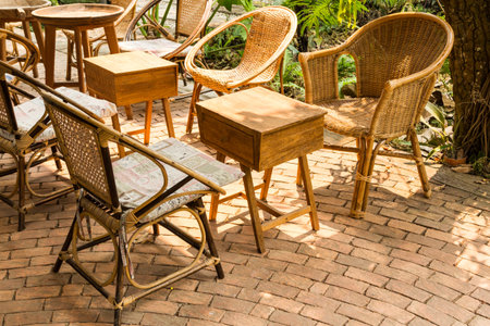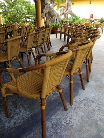wicker chairs in cafe garden