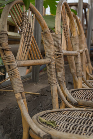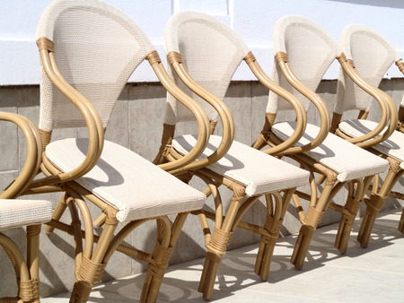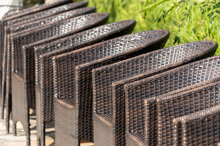 Brown wicker chairs lined up in a row - selective focus