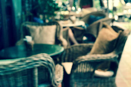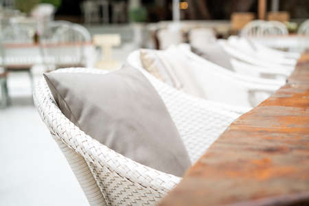 Outdoor restaurant coffee terrace open air cafe chairs with table. Summer vacation on resort