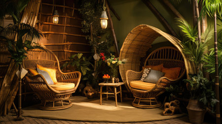 Two basket weaved seater in a lounge