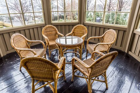 Sunny terrace porch with chairs happy rest day