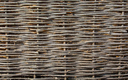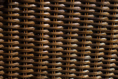 Wicker texture in dark brown tones. Bound stripes made of artificial plastic material.