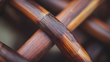 Explore the intricate details of natural fiber weaving in this stunning close-up photograph, showcasing the rich textures and patterns of handmade craftsmanship.
