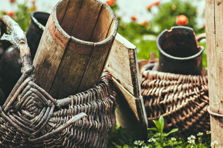Old vintage details and things. The stylized photo. Retro agriculture. Picture taken in the open air