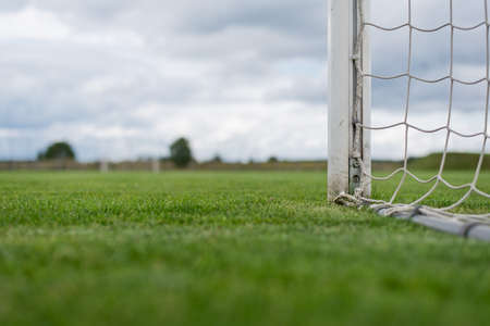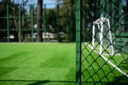 Training soccer field with a green turf. Football field with goals and markings or side lines
