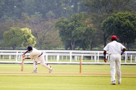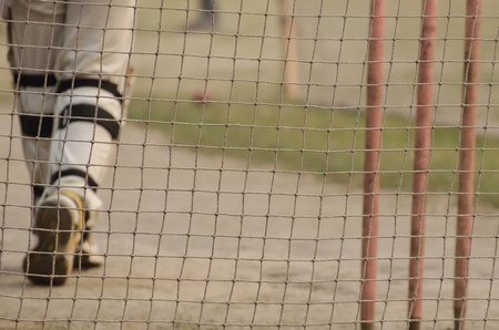 Mumbai, India - April 21, 2018: Unidentified boy practicing batting to improve cricketing skills at Mumbai grounds