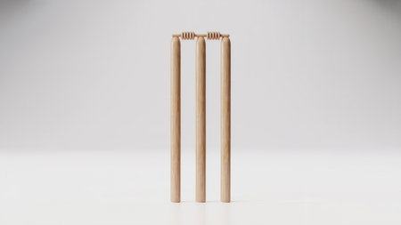Wooden Cricket Stumps and Bails Isolated on White Background
