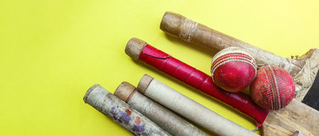 A broken cricket bat and damaged ball, evoking the concept of resilience in sports, reflecting the wear and tear of dedication and the journey athletes undertake in their pursuit of excellence.