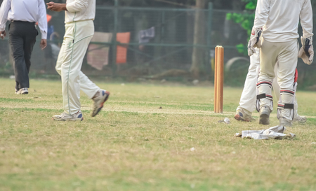 Low section view of a cricket batsman standing at a non-striker end