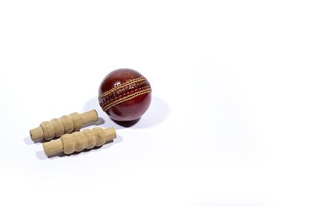 Cricket ball and bails are isolated on white background