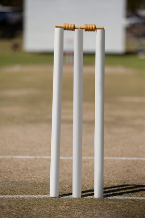White stumps on cricket field during sunny day
