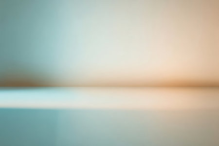 A minimalist studio background with a faint gradient from teal to cream, showing a subtle floor shadow.