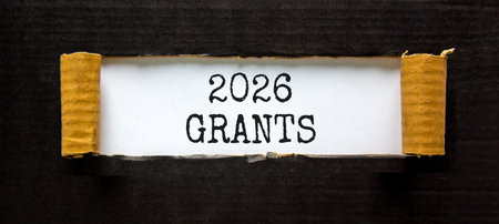 2026 Grants symbol. Concept words 2026 Grants on beautiful white paper. Beautiful black paper background. Business and 2026 grants concept. Copy space.