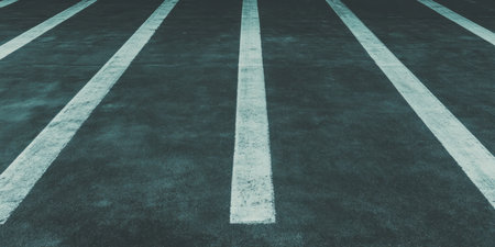 Textured asphalt surface at a transport hub showcasing clear parking lines in daylight