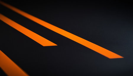 Urban road with clear yellow paint lines, ensuring direction, order, and traffic safety in cityscape.