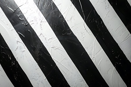 Diagonal black and white stripes forming a dynamic pattern on a grunge textured surface, creating a striking visual contrast