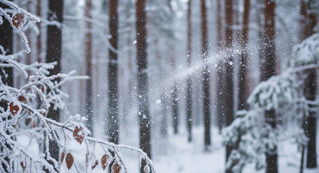 Serene winter forest in tranquil morning light with fresh snowfall.