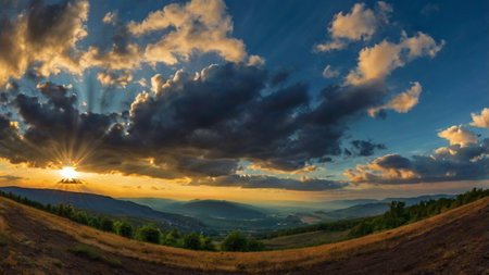 Panoramic view of evening sky with sun
