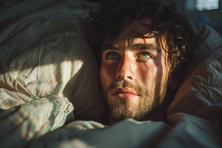 a man suffering from insomnia, having nightmares, bad sleep, feeling unwell, close-up