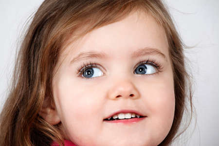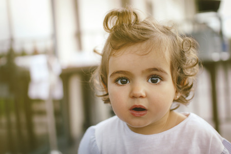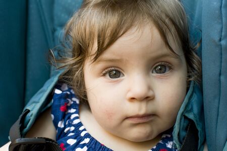 Adorable and cute face baby looking at camera. Close up image of an adorable little girl with blue eyes.
