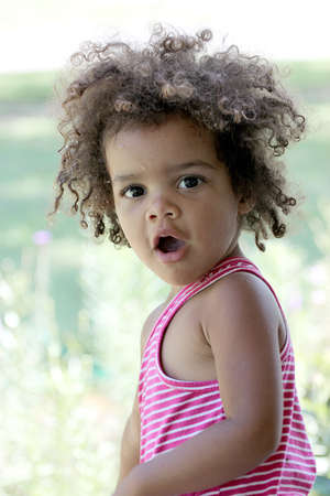 Close up of little Indian girl with her mouth open, Empress garden at Pune