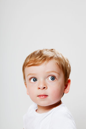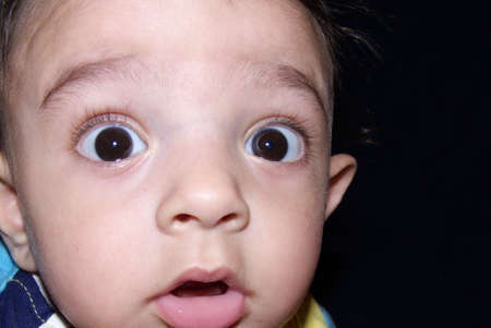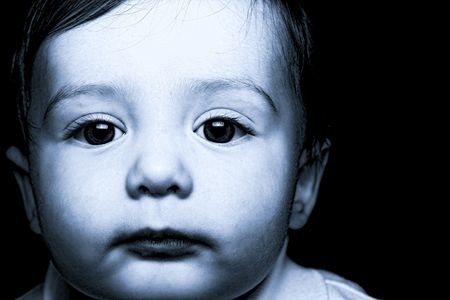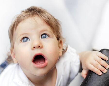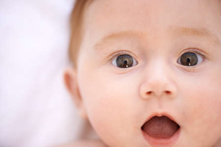 The innocent face of a little baby expresses such a joyful and charming air under the light of a studio.