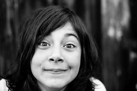 Portrait of a teen girl with big expressive eyes. Black and white photography.