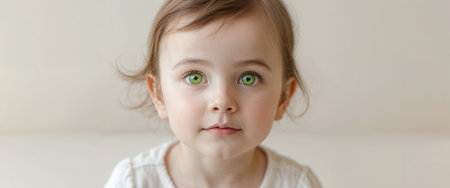 Portrait cute caucasian little preschool girl daughter toddler pretty talented kid friendly female face beautiful blonde baby with green eyes smiling looking at camera happy small child enjoy holidays