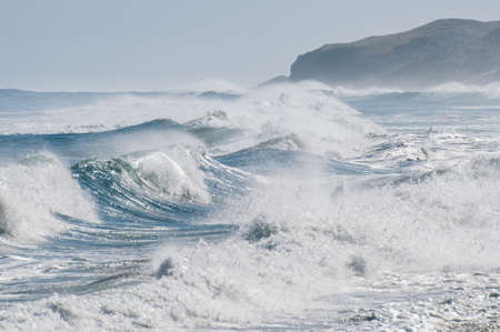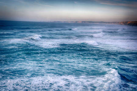 Waves breaking on the rocky coast of the Atlantic Ocean in Portugal