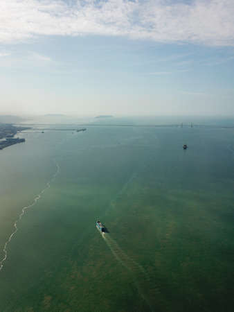 Georgetown, Penang/Malaysia - Feb 28 2020: Aerial ferry move toward Butterworth.