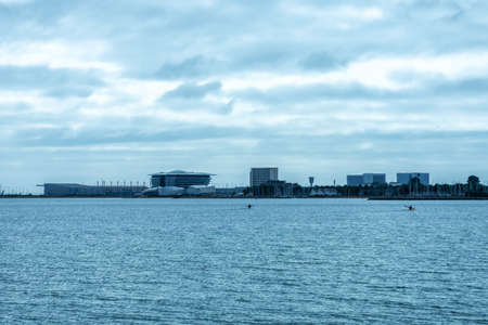 Caofeidian, China - November 9, 2020: Prospect of artificial island 1 in Hebei Tangshan, Hebei Province, China