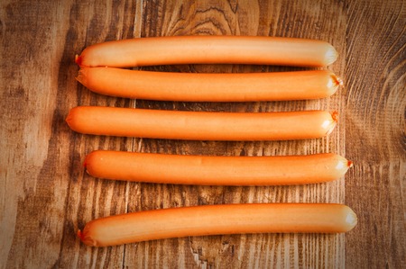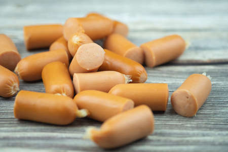 Sausage in small size. Sausage for a snack. Processed meat made from pork